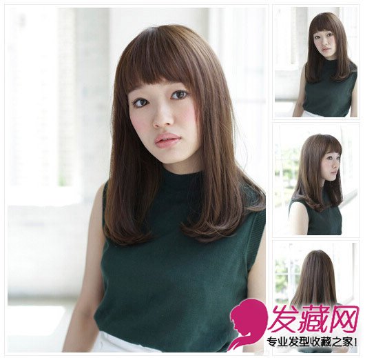 发型点评:齐刘海可爱迷人。内扣中长直发清新甜美的气质呼之欲出,甜美吸睛。