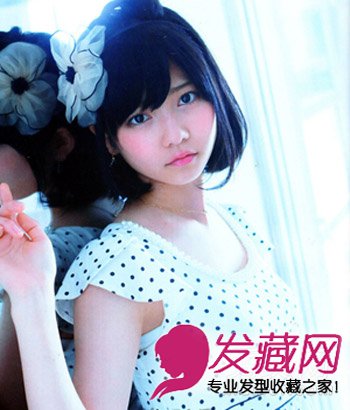 韩式简单中短发发型,也是很适合大脸女生的一款清新瘦脸发型,乌黑发丝自然莹亮,搭配发饰更显呆萌。