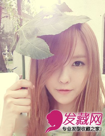 时尚的偏分长刘海遮住侧脸勾勒出气质与个性的一面,搭配上橘色染发十分吸睛。