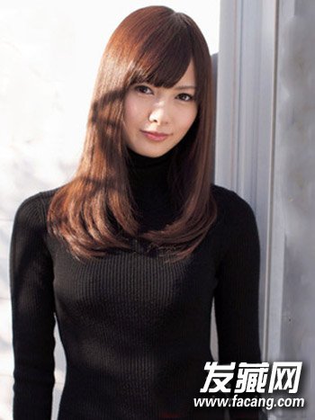OL上班必备的一款职场女性发型设计,顺直发丝加上碎剪的斜刘海,打造出精致的瓜子脸,搭配发饰更显优雅。