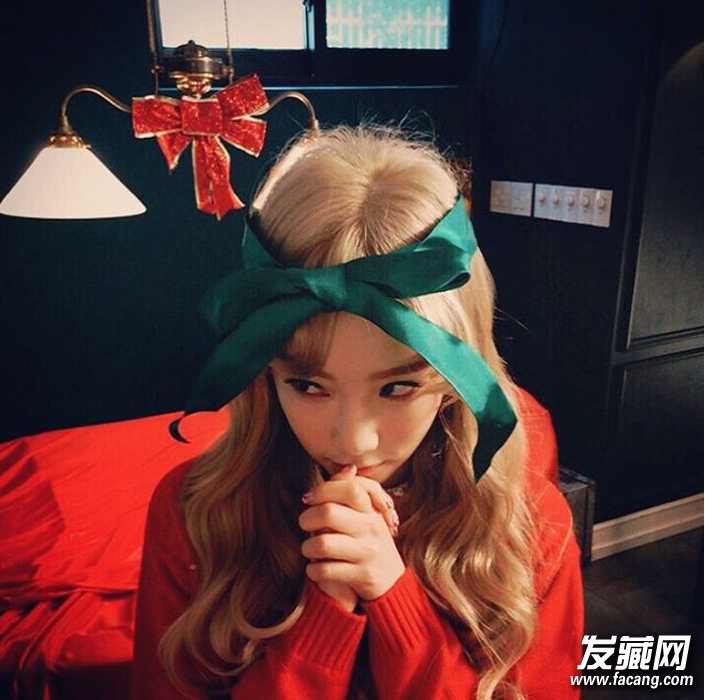 圣诞节那天,见到最多的颜色,无非就是红色或绿色,金泰妍将圣诞小饰品箍在头上,萌萌哒,既衬托了气氛,也好看。