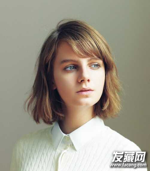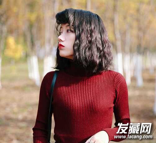 5、头发少的女生可以参考这款中短发烫发造型,刘海剪碎或者留空气刘海,只在发尾烫卷,打造高贵优雅的女人魅力,只要稍微把头发别于耳后,就能女人味十足。