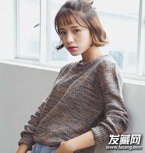 3、把中短发稍微扎起来,留一些烫卷的头发,可爱俏皮,空气刘海很减龄,虽说是一款扎发,但是出来的效果却魅力十足,好看的哦!