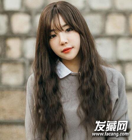 厚重的刘海配上两侧玉米烫的发型实在是太可爱了,这款玉米烫发型非常受到韩国女生的欢迎,会让你从侧面、正面或者是后面多个角度都优美无比。