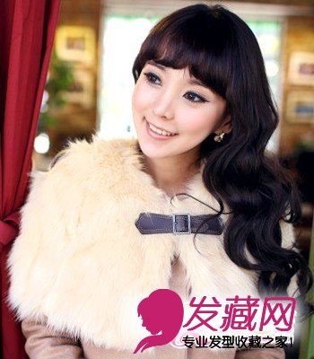 黑色的卷发可能会显得太过沉闷,那么不妨在卷度上做出变化。大波浪卷发很是大气 ,搭配刘海又不会觉得很老气。冬天的服饰利用毛绒绒的披肩点缀,更有名媛式的气质。喜欢走 优雅路线的女生,值得尝试此款发型搭配。