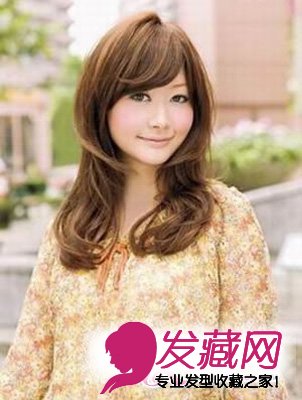 具有改变发量少以及能够完美的修饰脸型的一款时尚发型!将头顶部分只走出蓬松的feel,采用厚重的斜刘海来缩短脸型比例,打造鹅蛋脸的效果!层次分明的脸颊以及发梢出打造出S型的卷曲效果,恰到好处的长度选用了有厚重感的栗色染发,提升了整体的搭配魅力指数!