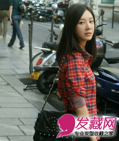 依旧是中分的中长发,中分的中长发是非常显瘦的哦。特别是搭上这种格子衫,即清新有文艺。给人一种闹市中安静女子的感觉。