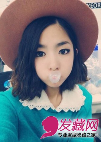 又是一款短发的泡面头发型,侧分的发型设计体现出成熟冷艳的感觉。韩范十足的短烫发,配上大帽子又很有英伦范。