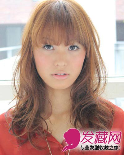 薄薄富有空气感的齐刘海在眼睛上班,突出了眼睛魅力。发量少的美眉更要弄上卷发,这样就可以看起来发量多点,卷曲的密度也相对大,这样就很饱满了。