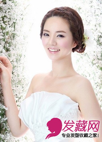 小编点评:花环式刘海编发饱满厚重,凸显出完美脸型。盘发清爽简单,随意点缀的花饰让你化身花间仙子,清新绽放。