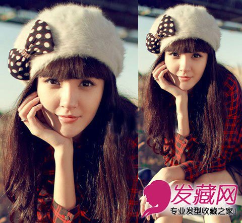 甜美发型Style:栗色齐刘海长发x贝雷帽