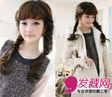 搭在双肩的双麻花辫,从来都是小女生们展现乖巧的最爱发型。结合棕黄色系的挑染和刘海、发尾部分的卷曲,让双麻花辫子发型不会土气,而更有童话感。在一侧耳上位置用蝴蝶结或花朵亮钻小发卡点缀,增加更多亮点。