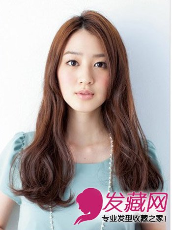 发型点评:皮肤白皙的MM可以尝试一下这款中分长卷发,巧克力色染发凸显出皮肤的质感,鹅蛋脸呼之欲出,散发出高贵优雅的女神气质。