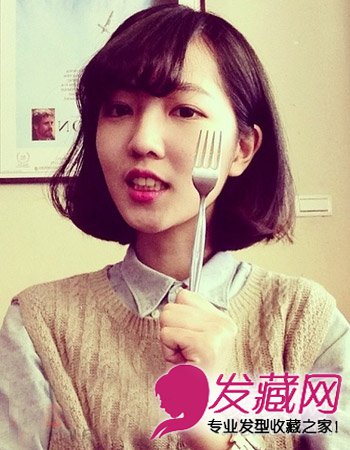 可爱的学生发型设计,齐肩烫发发型,发尾形成个性甜美的梨花造型,内扣裹住下巴修颜满分,可爱的刘海平添时尚感。