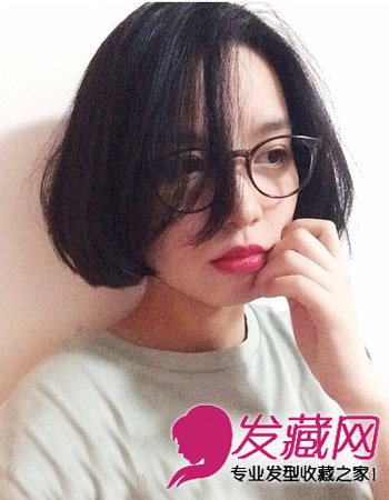 一款个性的烫发发型,纯黑色的发色搭配上颇具文艺气质的眼镜,给整个造型加分不少,中分发型与脸型的搭配更显气质。