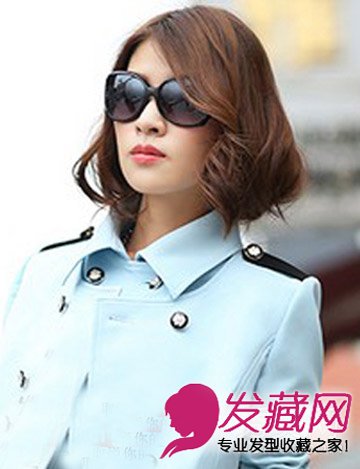 这款栗色的齐肩短发发型,烫成了卷发的造型,时尚大气,斜分的设计,搭配时尚墨镜,红红的嘴唇,娇艳动人呢,潮男们心动了吗?
