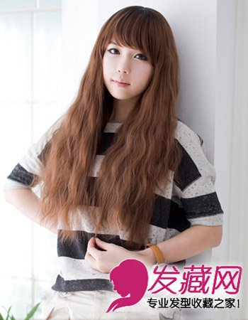 厚重的齐刘海发型,十分修颜减龄,再加上长长的卷烫造型,显得时尚,有魅力,再搭配时髦的染发颜色,很衬妹纸的肌肤哦!