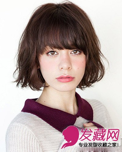 波波头清新减龄,刘海稀疏稍露额头,让脸型得到很好的拉伸,巧克力发色也将肤色显得更加白皙。