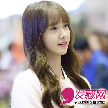 焦糖色的刘海造型韩味更浓,从发中开始自然的卷发柔顺亮泽,没有明确头发分界线的空气感刘海自然随意,充分体现出韩国女生清新甜美的“裸”装风格。