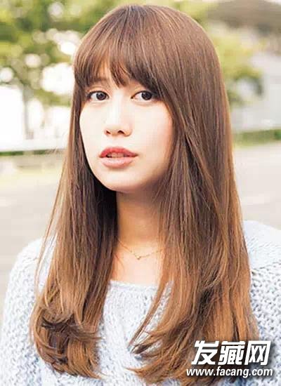 将长直发的发尾稍稍弄卷就能使头发变得无造作感般自然,厚重的齐刘海清新减龄。