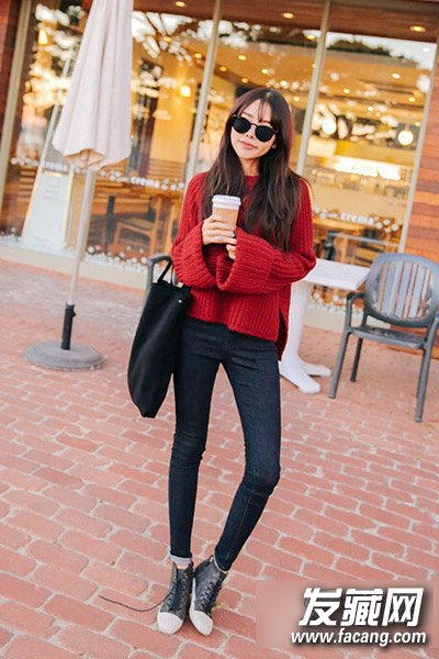 甜美的棕色系染发,中分的空气刘海大诶披肩的微卷发最是时尚养眼,一身喜庆的红色毛衣,更是让你瞬间变身街头时尚达人。