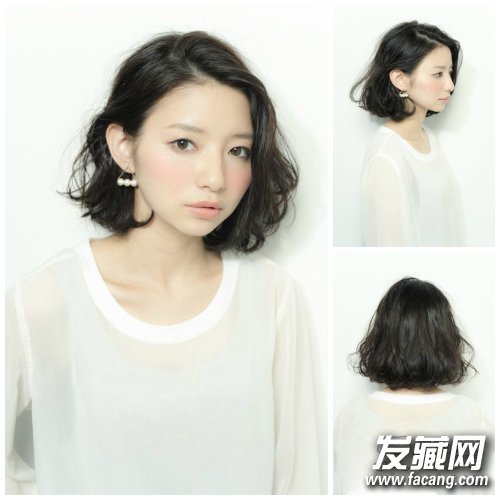 侧分的短卷发设计有不对称的美感,黑发色让皮肤更显白皙,让妹子在冬日变身时尚丽人。