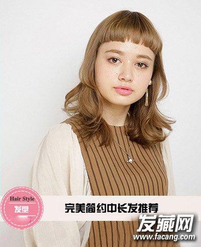 发型点评:烫出圆弧状的齐刘海一丝不苟,露出白皙的额头与整齐的眉毛。中长发烫出饱满弧度,个性十足。
