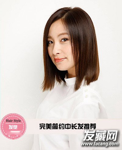 发型点评:侧分长刘海沿着脸颊垂直下来,自然的遮盖住脸部线条。直发烫发清爽利落。