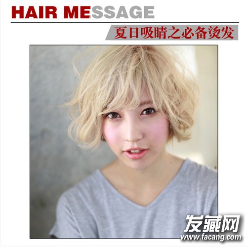 绝对吸睛的一款短烫发,亮眼的浅黄发色给夏日增加了一丝热度,刘海很有空气感,烫发整体感觉蓬松而轻盈,配上精致妆容灵气十足!