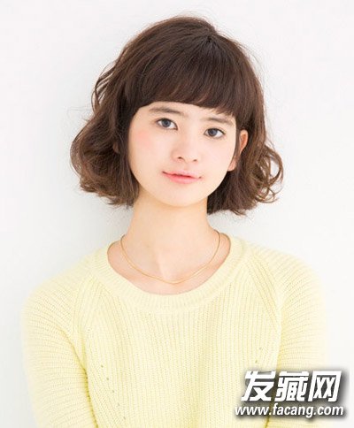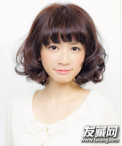 发型点评:这款发型推荐给圆脸的MM,饱满的刘海露出眉毛的设计,清爽而修颜。蓬松的梨花头甜美而清新。