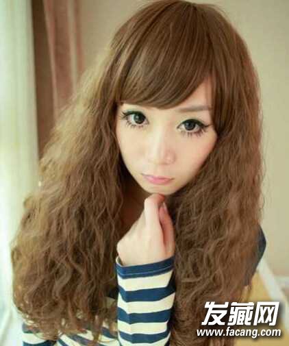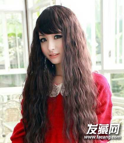 女生玉米烫发型图片1、这是一款长发玉米烫,总体打造出很强的蓬松感,搭配顺直的斜刘海,两者形成较为鲜明的对比,这种反差把人显得更可爱,而且蓬松的头发可以把脸蛋显得更精致迷人。