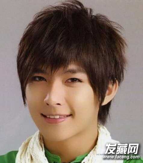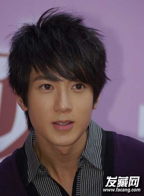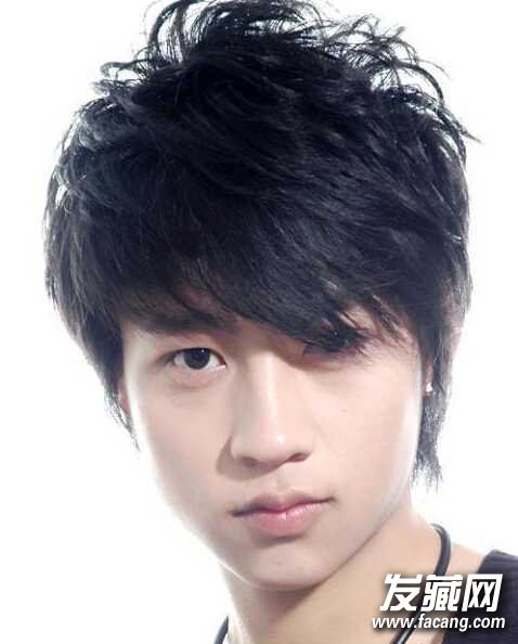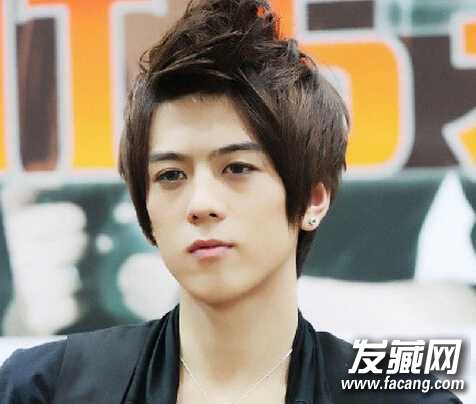 发根定位烫效果图4、脸小的男生也可以尝试发根定位烫,刘海保留顺直效果,头顶头发打造出蓬松感,整个发型出来的效果更有型更帅气。