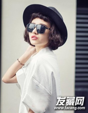 一款个性的短发梨花头发型,蓬松的刘海发型 的设计与帽子的点缀完美的凸显出时尚感来。