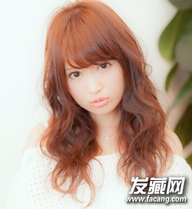 这款烫发发型给人一种非常梦幻甜美的感觉,轻盈的空气刘海搭配上蓬松的空气烫发,不仅超显气质,而瘦脸的效果也特别好,搭配酒红色的发色更显得甜美可人。