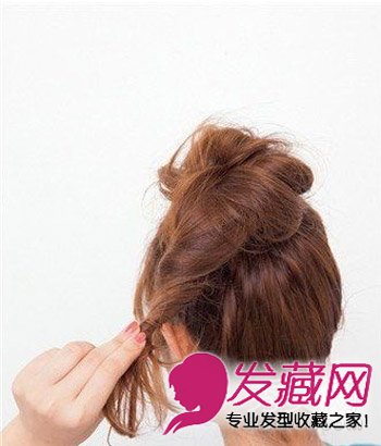 捏住拧起发束的中间部分。