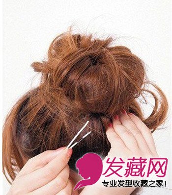 塞入丸子头的底部用发夹固定好。