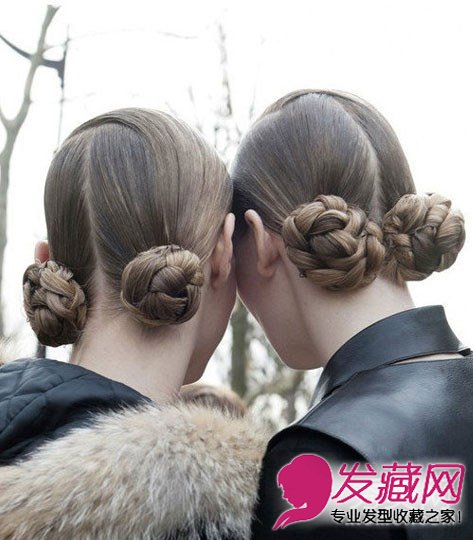 偶而扎两个低发髻丸子头也是不错不多选择,编发变成盘发更显精致,两个人一起更加俏皮可爱。