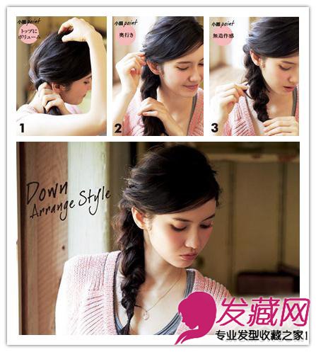 淑女马尾侧编发:1、将头发梳到一侧后向脸部内侧旋转,然后将头顶的头发抓高。2、编成三股辫,有碎发的话要向内旋转后别进头发内。3、最后抽出碎发增加三股辫的分量。