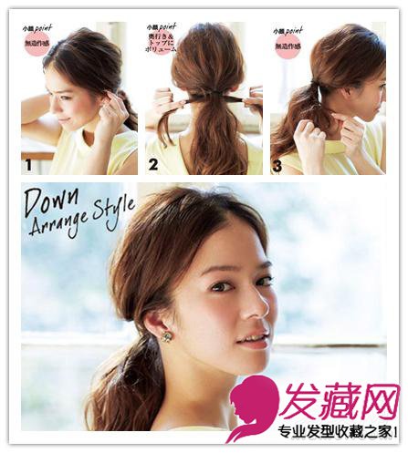 自然优雅低马尾:1、梳马尾的时候一定要将最前面一层的头发揪出来一些,保证脑顶的头发高度。2、从马唯中抽出两绺发束,掺烧在皮筋固定的位置。3、最后将马尾打伞,制造蓬松感。