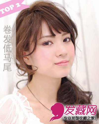 小编点评:卷发由于它的轻盈的发卷和蓬松感本来就是瘦脸的首选,在此基础上往耳旁扎一个松松的低马尾,脸部的视觉瘦身效果更进一步。