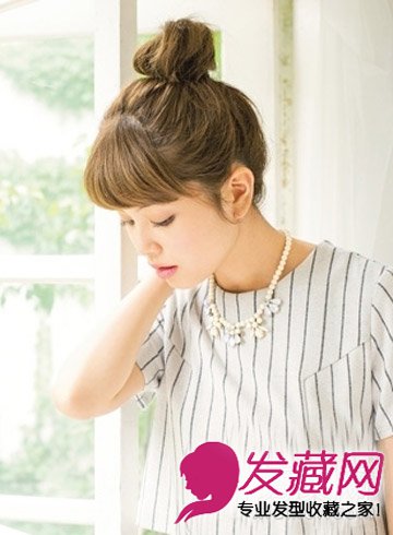 第一款:高耸的丸子头活力十足,露出清爽的脖颈俏皮显甜美。