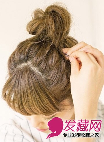 step2:再将发尾缠绕成丸子头后用发夹固定。