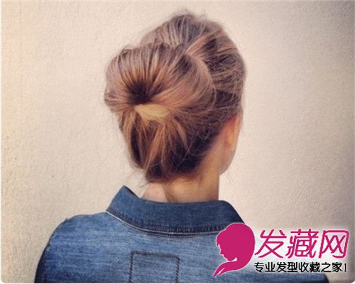 这款发型非常的简单易于打理,比较适合有点懒但又爱打扮的美眉哦,金黄色的柔顺的染发盘成丸子头的造型很赞。