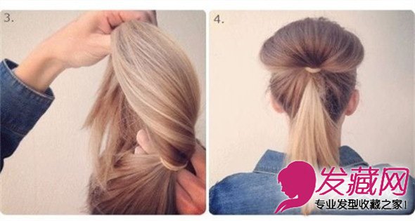 STEP 2 用两根手指往头发里面穿个洞,把马尾从上面穿下来,留出点蓬松伞状马尾。