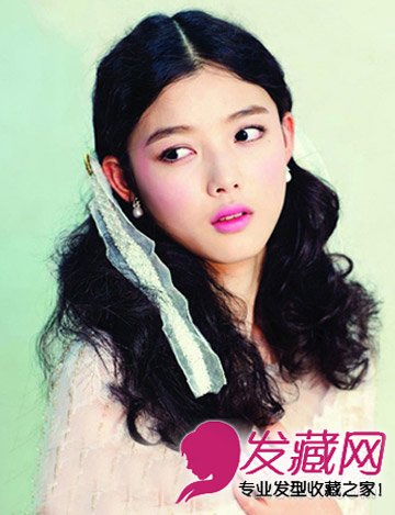 圆脸女孩最适合蓬蓬的卷发喽,中分的小卷发型扎起双马尾在两颊,粉嫩的妆容下尽显可爱少女韵味。