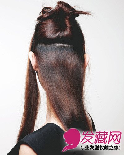 step 1:如图所示将头发分成几个部分,头顶上的用发夹暂时固定。
