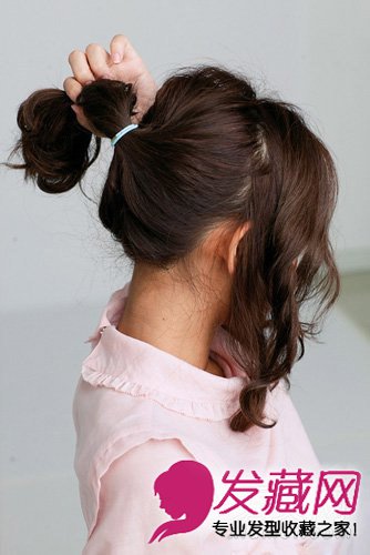 1,直发的人把所有头发都先稍微卷一下,然后把耳朵后面的头发扎成一束。
