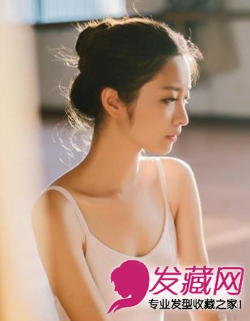 本就清新的五官搭配上自然的随意绾扎的丸子头显得十分有文艺气息,露额造型简单大方,对于女生来说更显唯美感。