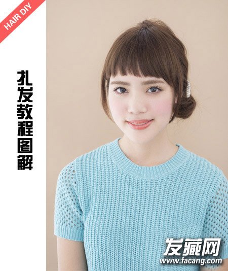 碎发齐刘海遮盖住额头展现出甜美的气质,两侧略长的头发遮盖住脸颊达到修颜效果。