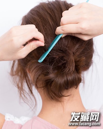 STEP 4:用梳子逆梳余下的发尾,将其打毛变蓬松。